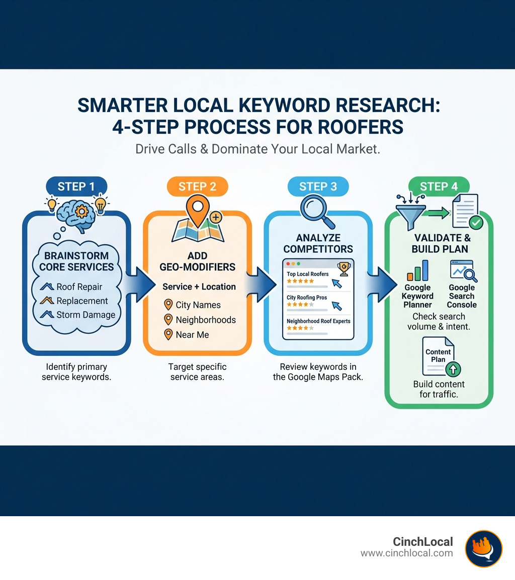Effective local keyword research is the most critical first step in a digital marketing strategy that actually grows your roofing business. By following these four steps—brainstorming your services, adding geo-targets, analyzing competitors, and using the right tools—you build a powerful foundation to attract more local customers. This research is the blueprint for the content on your website, your Google Business Profile, and your local citations.