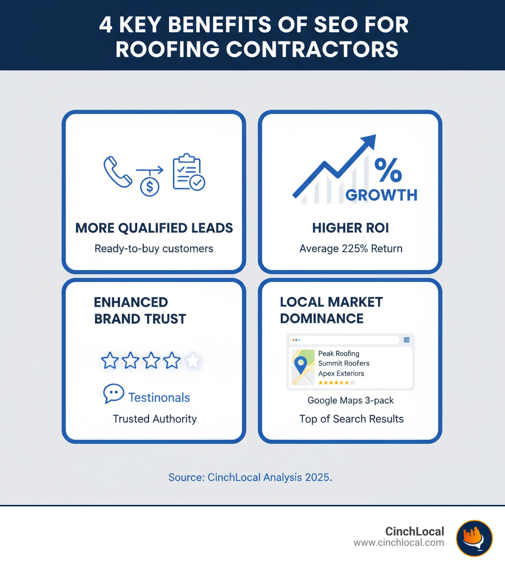 This digital shift is a massive opportunity. SEO isn't just a marketing expense ; it's the foundation of a growth engine that works 24/7. Unlike paid ads, a strong SEO strategy builds lasting digital assets that generate leads for years. The average ROI for roofing SEO is 225%, but the real prize is predictable lead generation .