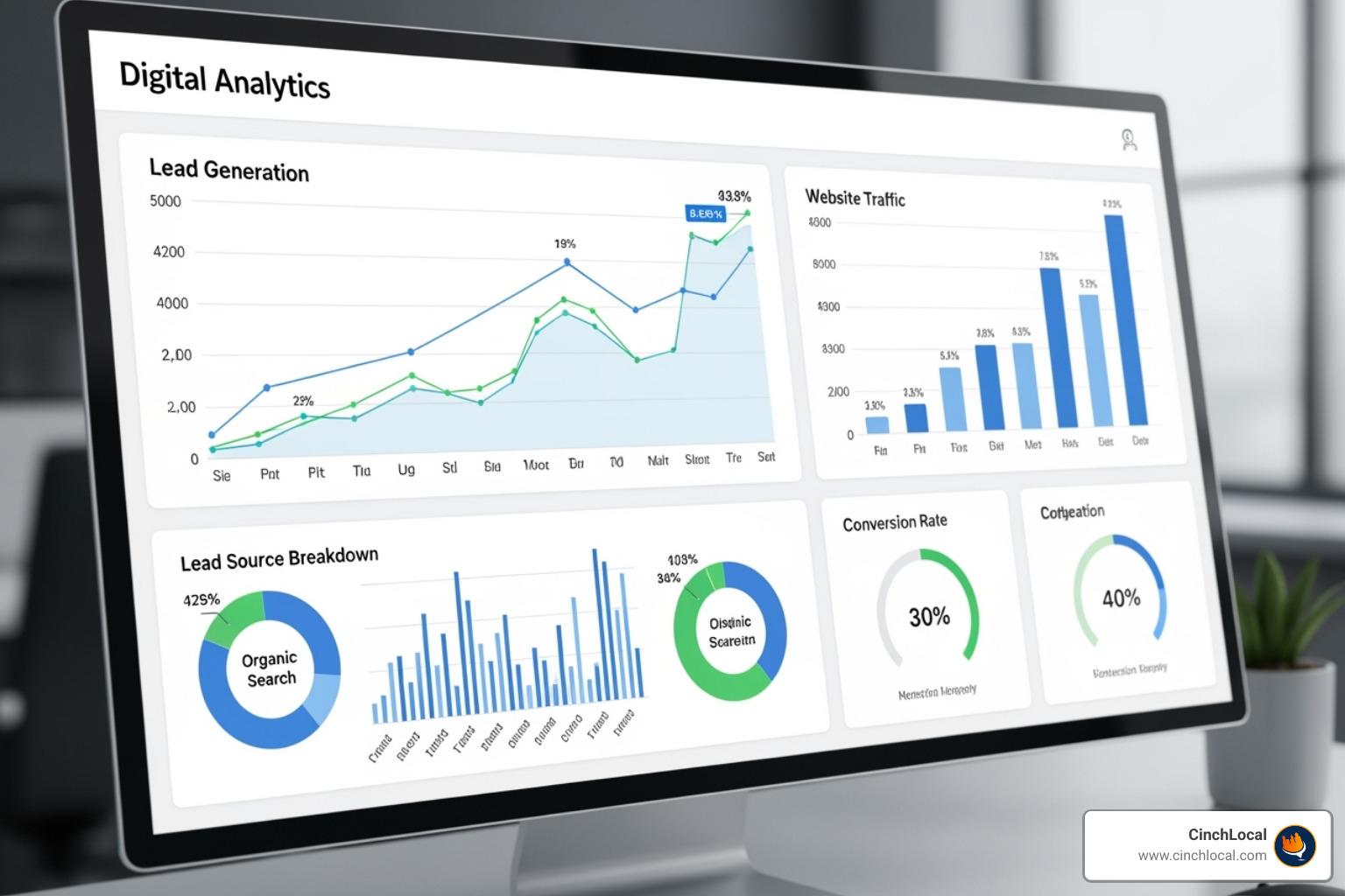 At CinchLocal , we focus exclusively on helping roofing contractors dominate their local markets. We understand your business's seasonal nature and how to position your services for maximum impact. The best agencies deliver measurable outcomes, like the 284% increases in organic traffic and 264% more monthly leads we've achieved for clients. These results come from a comprehensive strategy.