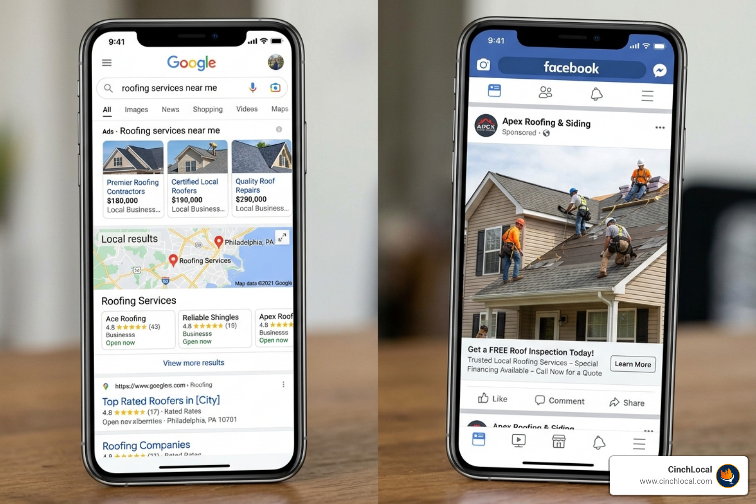 To dominate your local market, you cannot rely on a single source of leads. The most successful contractors use a multi-channel approach that balances search intent (people looking for you) with brand awareness (people getting to know you). When we talk about online advertising for roofers , we are looking at a system where different platforms handle different stages of the customer journey.
