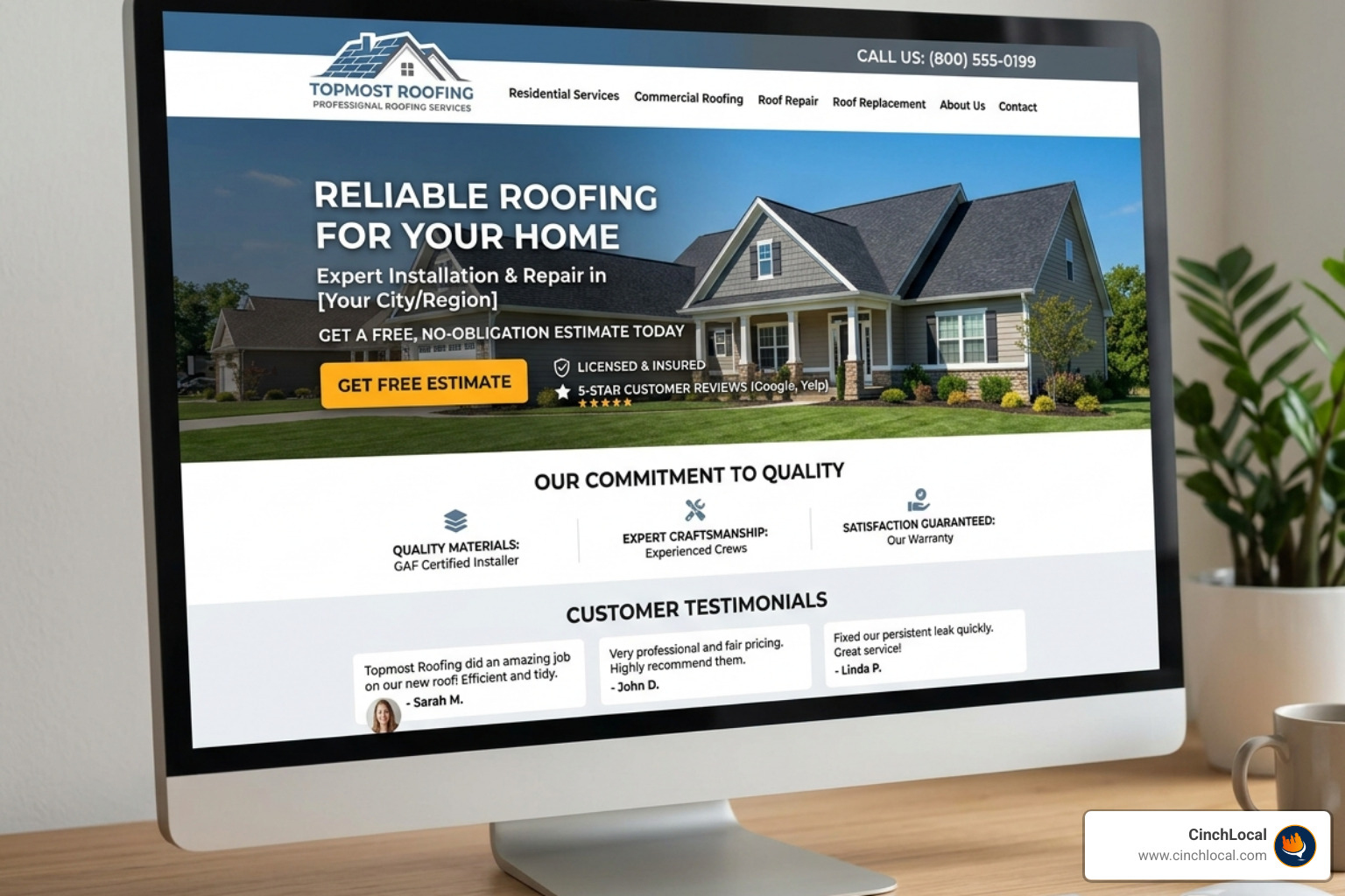 At CinchLocal, we specialize exclusively in the roofing industry. We understand that you don't just need "traffic"—you need homeowners in your service area who are ready to book an inspection. Our unique Roofer Footprint Expansion System is designed to fix the technical gaps, dominate the local Map Pack, and deliver pre-sold leads to your inbox.
