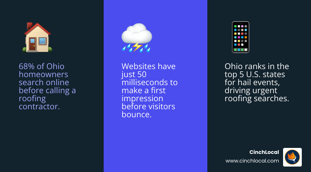 - 68% of Ohio homeowners search online before calling a single roofing contractor
